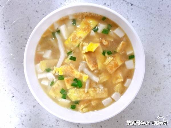 【白玉菇雞蛋絲豆腐湯的具體做法】
