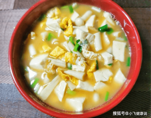 好處:豆腐是公認高營養食材,烹飪方式多樣,搭配白玉菇和雞蛋絲一起煮,能夠起到滋補營養,鈣質全部融於湯汁里,裡面的植物蛋白含量很高,鈣質不輸牛奶,多吃補充能量,孩子個頭有了明顯增高。而且天冷了多喝豆腐湯,還可以舒緩腸胃,改善胃口,利於食物的消化和吸收。