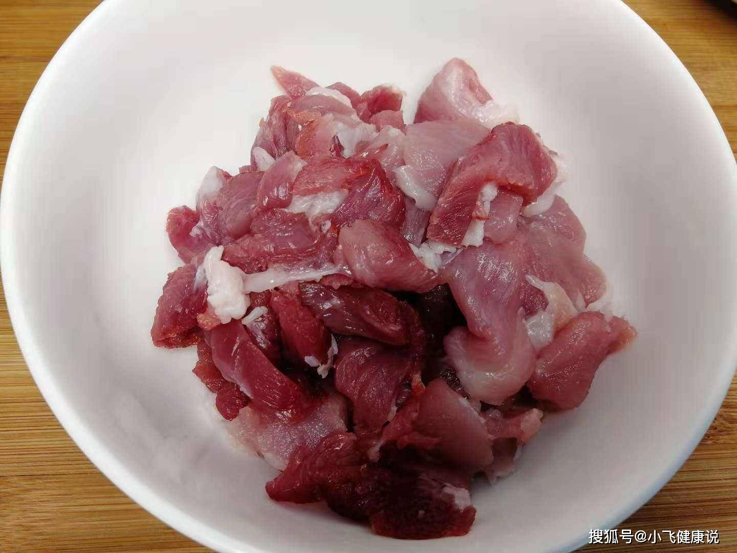 2:將豬肉反復沖洗掉表面的髒東西,豬肉全部分成肥瘦肉,瘦肉全部切片,瘦肉記得要提前醃制。