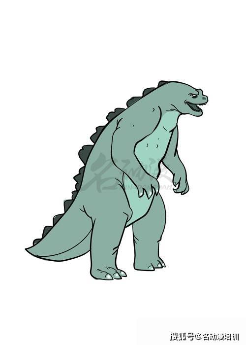 第六步:上色。哥斯拉的背部與腹部的顏色是不一樣的,上色的時候稍稍注意一下,這樣哥斯拉就畫好了。