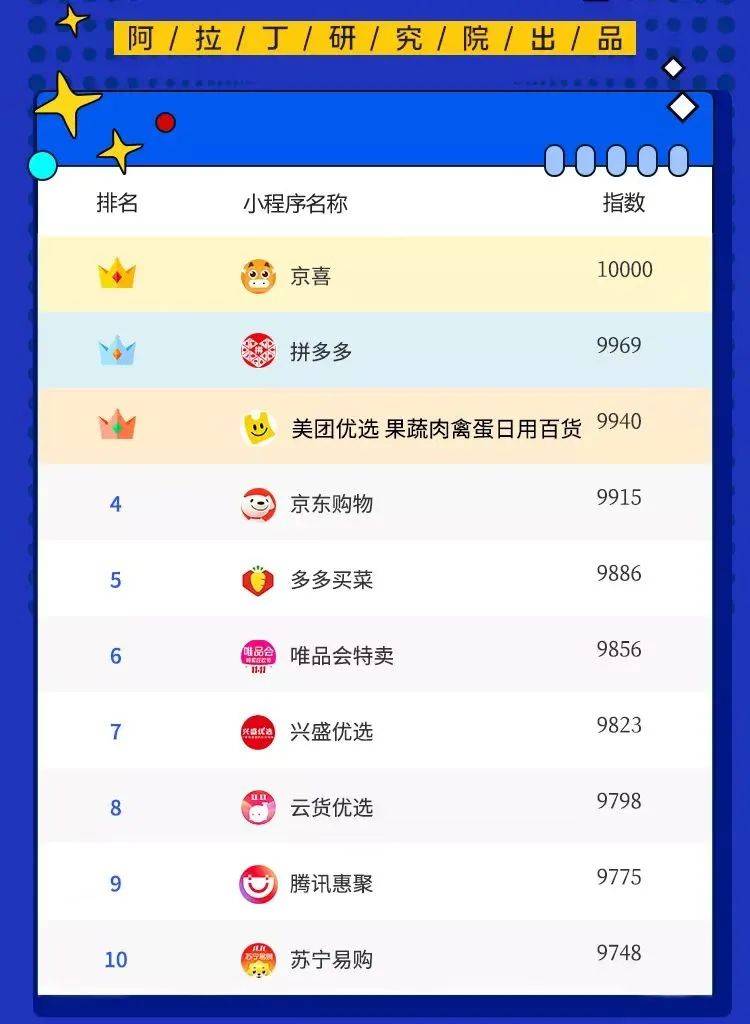 11月12日,在阿拉丁指數聯合阿拉丁統計平台發布的「網絡購物小程序TOP50榜單」中,京東旗下生活消費商城京喜問鼎第一,成為最受用戶歡迎的生活消費小程序。