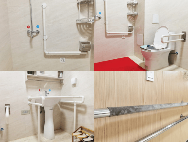 同時,在最容易滑到的衛生間、無障礙通道和樓道等地,都安裝了護欄扶手。