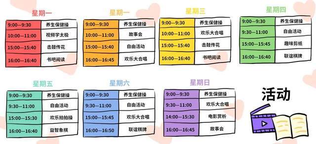 棋牌、書畫、手工、電影、球類運動等等,一應俱全。