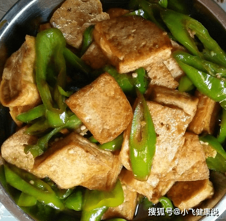 青椒和豆腐一起炒,含有的纖維質地比較柔細,容易有飽足感,能促進腸胃蠕動,可以預防便秘,維生素C還是高效的抗氧化劑,能與體內的自由基結合,從而消除自由基,具有延緩衰老,美容養顏的功效;每天一盤,血管通了,小肚子不鼓了,皮膚細膩。