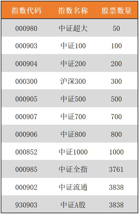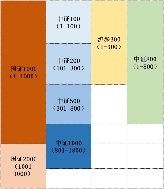 目前國內最成熟的規模指數是中證系列規模指數: