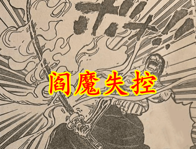 燼變回人形,將索隆打飛。倒在地上的索隆,聽到了三味線聲,猜到日和來了。然而,對於三味線聲,索隆手中的閻魔反應這激烈很多,刀身冒煙,強制吸收索隆的霸氣,索隆右臂急速衰弱,閻魔失控了。