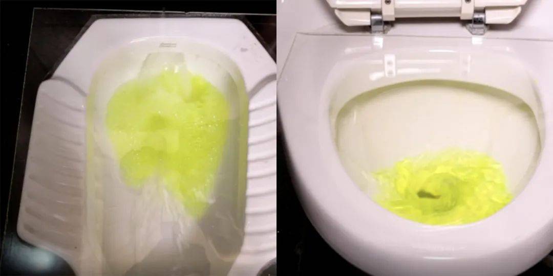 研究人員將會發光的螢光素鈉,分別加入蹲坑和馬桶的水槽中,接著在正上方安置一塊透明玻璃,觀察在沖廁所時候玻璃液體濺起的情況。