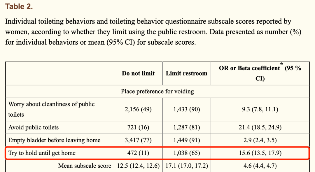 【1】Reynolds WS, Kowalik C, Kaufman MR, Dmochowski RR, Fowke JH.女性對公共廁所的認知以及與如廁行為和膀胱症狀的關系:一項橫斷面研究.尤羅.2020;204(2):310-315.