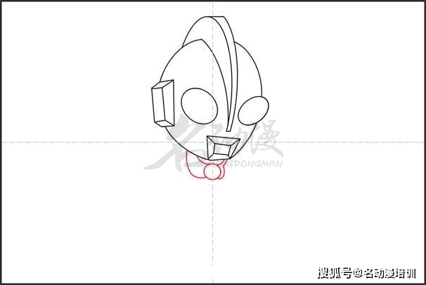 第二步:這一步我們要做的是把奧特曼脖子上的配飾慢慢畫出來,記住不要急,慢慢來,這樣才能一步到位畫准確了。