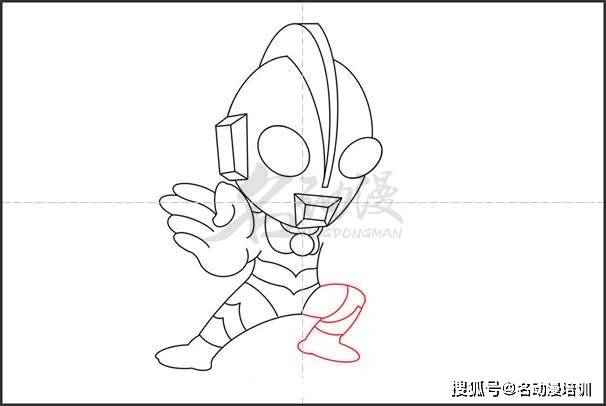 第五步:這一步,我們要把奧特曼的另一條腿畫出來。腿部繪制完畢後,奧特曼的身體也差不多繪制完成了。