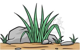 最後一步:新建一個圖層,將石頭和小草的顏色將其塗好,這樣就完成了簡單的小草就完成啦!如圖所示: