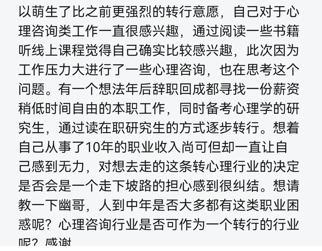 她們要從體制內跳出來,要先學個技術,並且已經考了各種職稱、資格證、人力資源管理師等等。甚至她們中,還有在省會城市國企年薪都20萬了,卻試圖裸辭、考研、考心理咨詢師和心理學的碩士,然後改行做心理咨詢師。