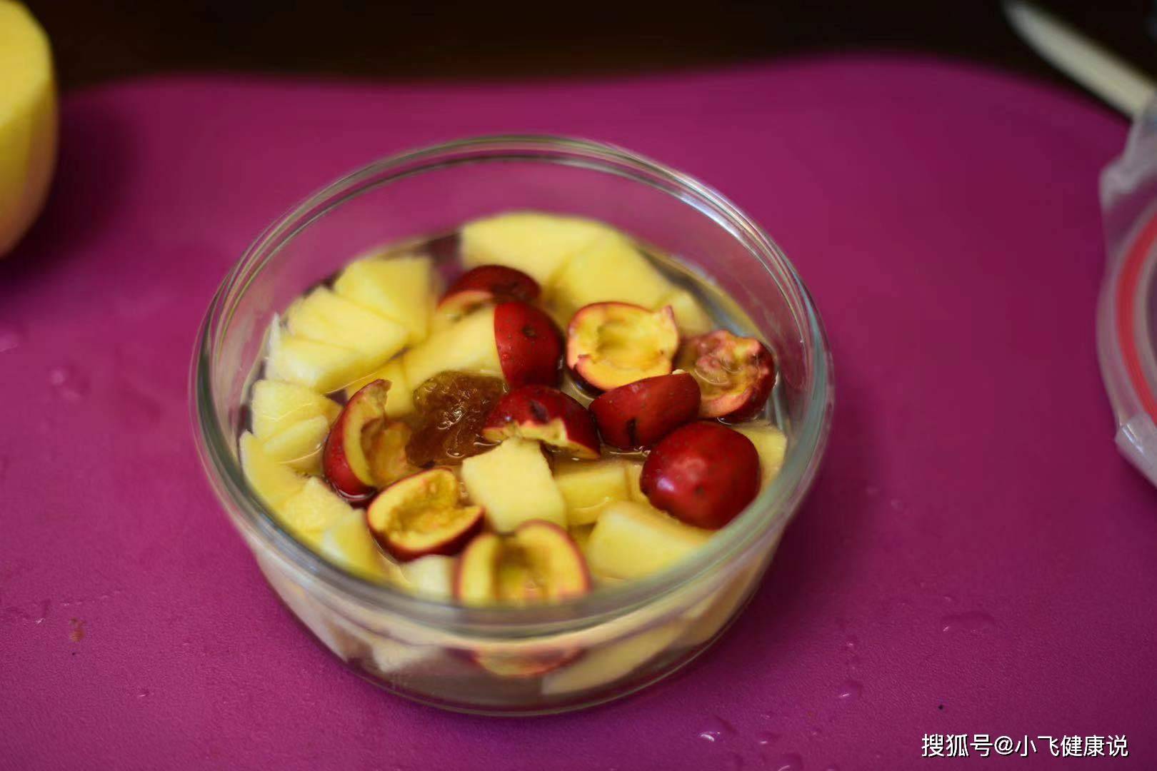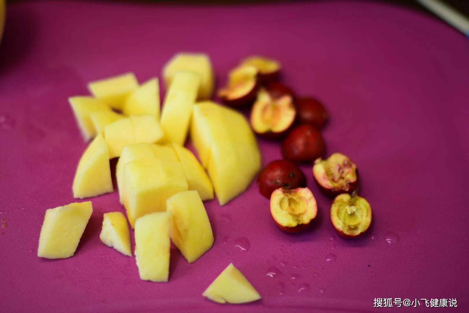 1,蘋果去皮切成小塊備用,山楂洗淨後對半切開,把核刮干淨