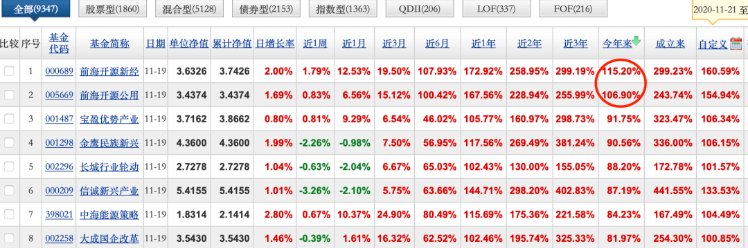 截至目前,前海開源崔宸龍管理的前海開源新經濟和前海開源公用事業穩居排名第一和第二,年內收益率高達115%和106.9%,也是現在僅有的兩只翻倍基。另外,寶盈優勢產業、金鷹民族新興、長城行業輪動、信誠新興產業等幾只今年總體表現都很好的基金,年末階段依然具備沖擊榜首的機會。
