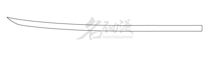 第一步:首先繪制武士刀刀片和手柄的組合基本形狀的輪廓。這種形狀的刀片部分是稍微彎曲,而尖端指向該彎曲的方向。如圖所示:
