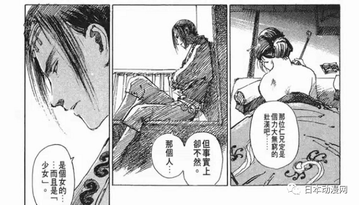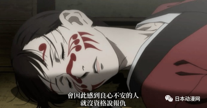 同時《無限之住人》對主角反派一視同仁,純粹的描述他們的境遇,不約而同的,每個浪人劍客都有弱點和過往。當畫面轉到兩年前代領逸刀流殺死凜雙親天津影久時,他正與身旁的游女談起舊夢,孩童時期那隻令人畏懼的猛犬,還有那個斬殺猛犬並未沾染半點血色的柔弱少女,描述少女時,他說月色下,她神情幽怨,皮膚如死屍般雪白…恰與身側的游女極其相似。這位天津口中的少女,便是《無限之住人》中的劍術戰力天花板乙橘槙繪。肅殺,憂思,柔情,惘然,很難概括天津此刻的情緒,可比起最初那個為了一統的冷血殺戮形象,此刻談起乙橘槙繪的天津才像一個有血有肉的人。也讓觀眾不禁猜測,他僅是為了利用那個所向無敵的劍客麼?