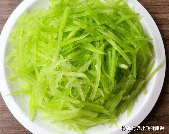 第一步:把萵苣去皮之後,切成細絲,放入盤中備用。