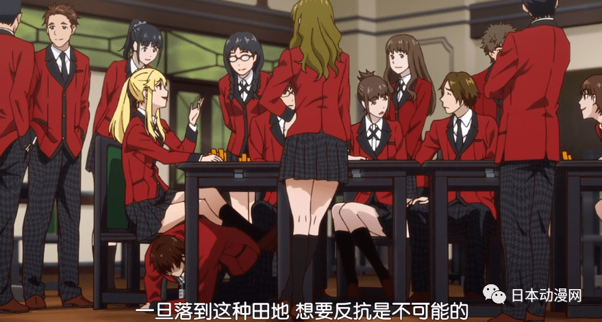 「家畜」在這個學校里是活在最底層的人,因為負債,所以他們都得圍著債主轉,因為「家畜制度」的薰陶,幾乎所有學生都看不起家畜,只要有誰身邊有人因為賭博變成家畜,哪怕在這之前跟他是很好的朋友,那個人大機率也會變成嘲笑他的那群人中的一員,這個校園的人就是如此現實,如此勢利。