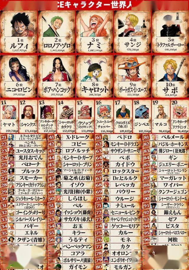 前段時間,《海賊王》官方弄了一個全球全 角色人氣 投票活動,最終的投票結果在5月5日通過電視直播的方式公開。