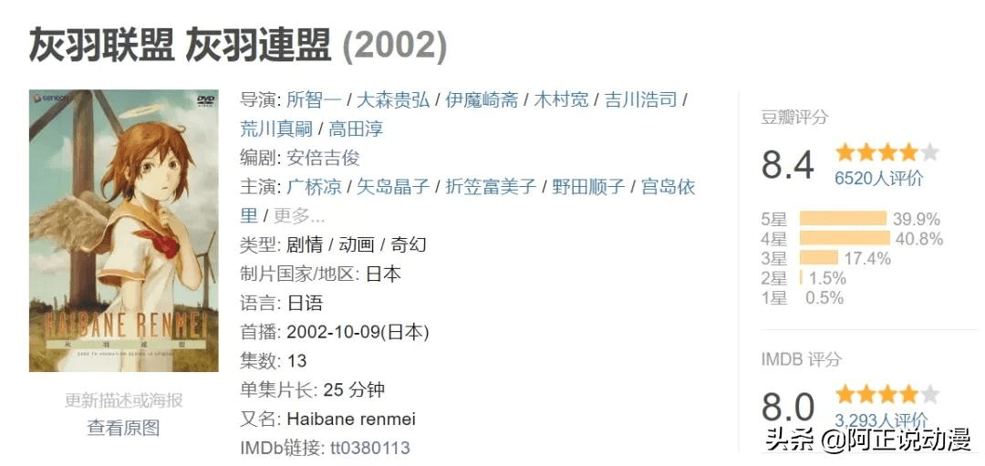 現如今,《灰羽聯盟》的B站評分9.5,豆瓣8.4,IMDB 8.0。