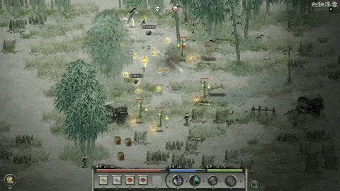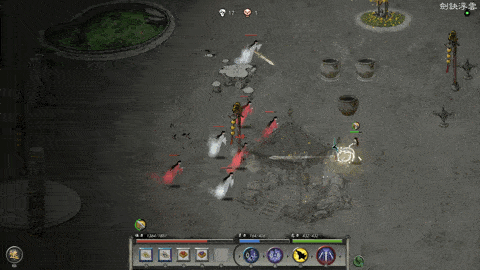 首先要聊的就是《鬼谷八荒》的戰斗設計,游戲採用2D平面玩法,這一點與游戲水墨風格的美術非常的契合,這樣的設計能夠最大化的利用美術資源。