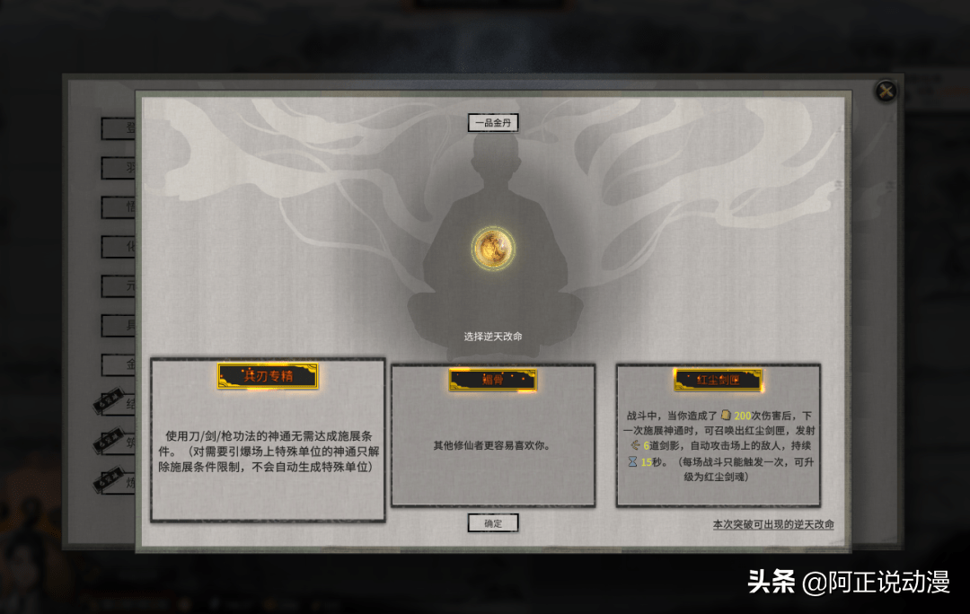 而最為核心的玩法就是功法的修煉以及逆天改命的選擇,就正如上文所提到的劍修為例——你需要在世界各處找尋強力的功法秘籍,還要在修煉到一定程度可以在提升境界時選擇加成強的逆天改命屬性。