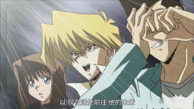 在動畫中, 宿敵海馬當時也在場,他一句話都沒能說出來。即便動畫給海馬加了這麼多戲,但送別這件事情,只有城之內來做才合適。