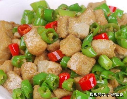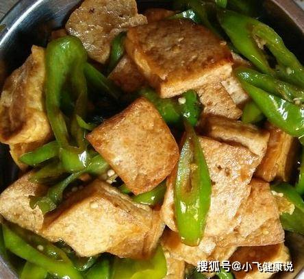 青椒和豆腐一起炒,營養極高,含鐵、鎂、鉀、煙酸、銅、鈣、鋅、磷、葉酸、維生素B1、蛋黃素和維生素B6,每天一盤,血管通了,小肚子不鼓了,皮膚更細膩。