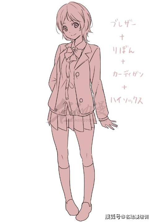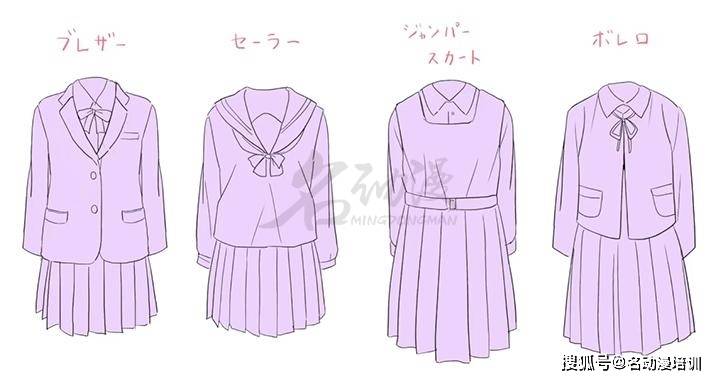 第一步:日本校服主要制服是外套和水手。 此外,還有各種制服,如跳線裙、波列羅和連衣裙。基於這些服飾,可以畫出自己理想中的制服,也可以通過改變顏色,形狀和著裝的方式設計出自己角色的校服。