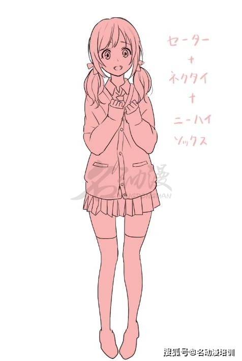 第二步:首先是外套,絲帶,開衫和高襪子的組合。這種類型的校服經常出現在各種作品中,比如《名偵探柯南》里常常會出現這種款式的校服。我們通過改變裙子的設計和外套的顏色,塑造出給人一種完全不同的印象。