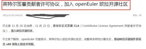 近日,晶片和伺服器巨頭英特爾正式表示,已經簽署了貢獻者許可協議,正式加入了歐凱開源社區。英特爾的這一決定意味著華為的歐拉作業系統已經獲得了行業巨頭的認可。而有了英特爾的正式加入以後,也就意味著華為歐拉系統的生態完整度會大大提升,未來二者也會實現技術互通。