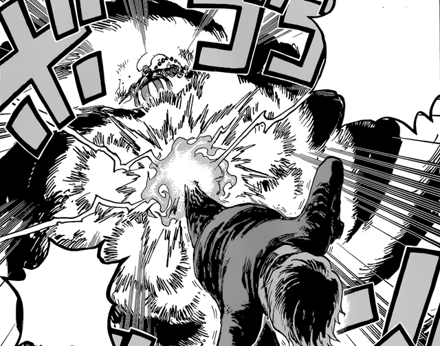 然而,因為奎因的屑行為,山治自我懷疑,踩爆了戰斗服,奎因的算盤失算了。
