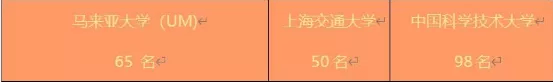 馬來亞大學,今年的QS排名是65。已經連續3年排名世界前百。排在上海交通大學之後,比中科大,南京大學高。