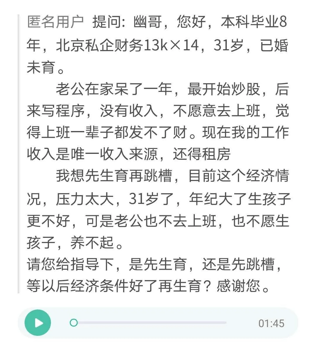 你看下圖這位女讀者的提問。