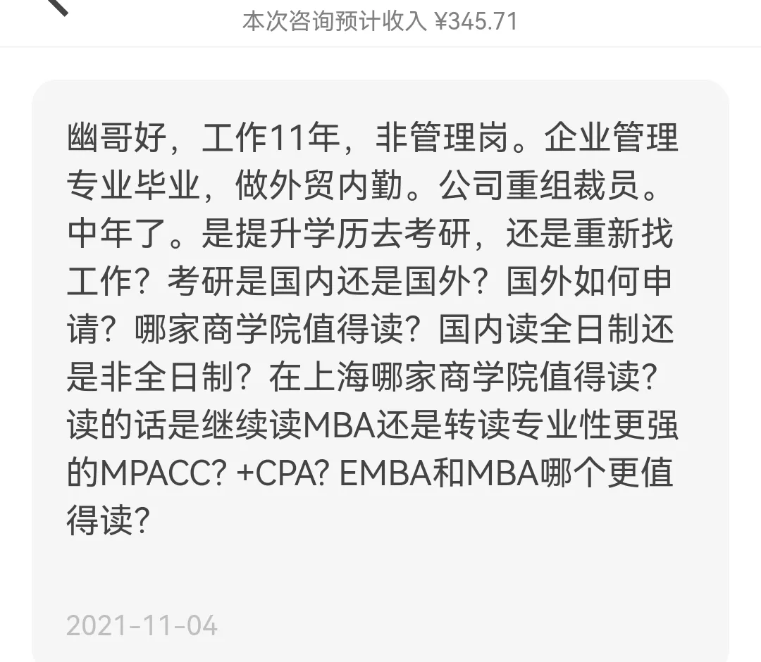最終她的碩士之旅能否成行,要取決於她的家庭和家人尤其經濟情況,但對於她這八九個提問,我倒是對其中的「讀國內還是國外?哪家商學院?」有了一個更確切的新答案。