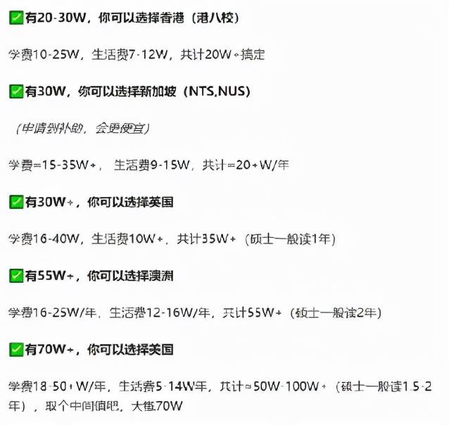 我仔細查詢了各個國家的留學開支,將學費信息匯總成一張圖片:
