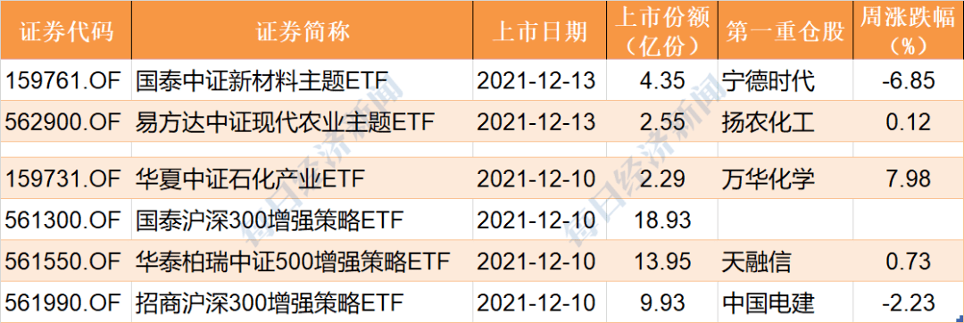 下周已披露上市的ETF跟蹤標的為新材料和現代農業主題。