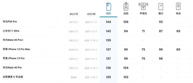 在Dxo榜單當中,華為可以說是榜單上的常客。因為憑借著華為影像算法的優化加上光學巨頭徠卡的認證加持,所以華為Mate和P系列兩大旗艦產品也是交替上榜。比如目前的Dxo影像榜當中,就是華為P50Pro穩居榜首,領先於小米11Ultra手機。