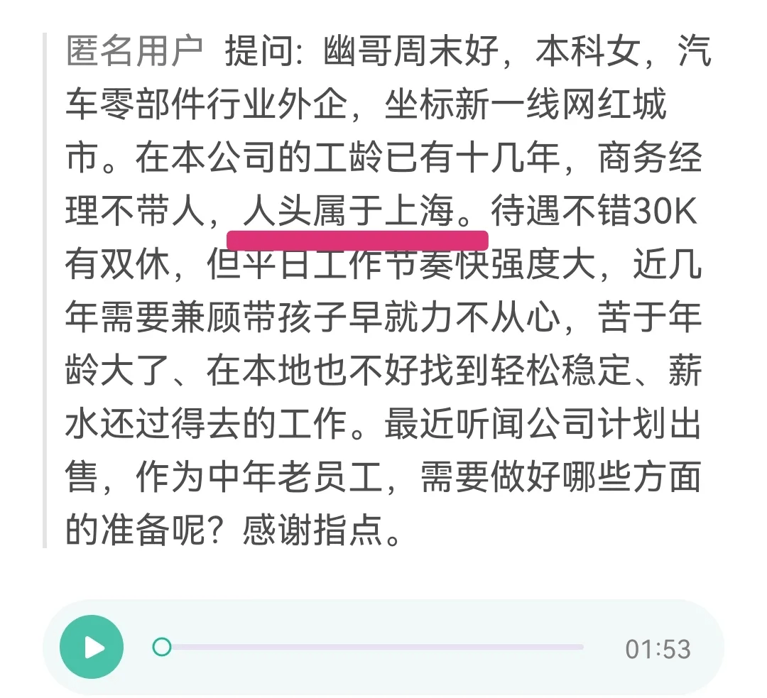 她目前大概月薪3萬,五天八小時,15薪則是大型外企的標配。其實這個方法在這里我寫過,《小城市,如何獲得高工資?》,你投遞在上海的人事招聘的你老家的職位,可以叫做異地招聘,也可以叫做上海駐外的崗位,社保可以選擇在上海繳納,也可以選擇在你老家分公司,你的人頭在上海。