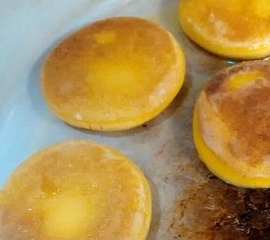 9,一次可以做很多,攤開冷凍,凍硬的後南瓜餅裝袋,進冷凍室保存。吃得時候無需化凍,直接放入鍋中小火慢煎。