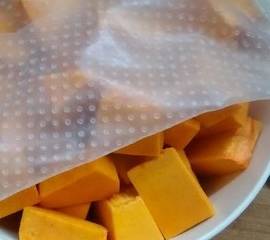 1,南瓜去皮,去籽,切大塊,放入大碗中。