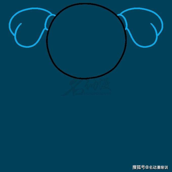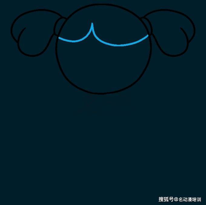 第二步:接著在圓頂兩側,分別使用一條曲線在頭部的每一側圍成一個圓形。這些是發帶。從每個發帶,延伸出一對曲線。讓它們重疊成下垂的心形。這形成了馬尾辮或辮子。如圖所示: