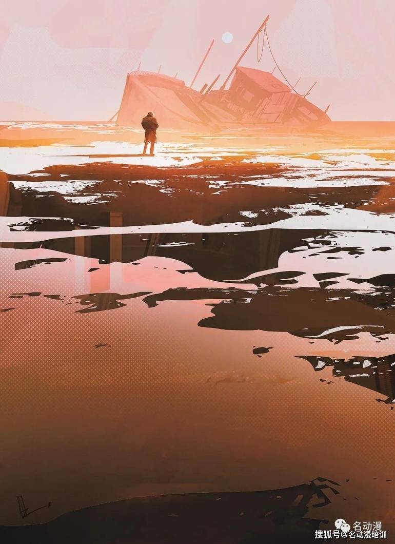 這種「簡單的速塗」,很多練習場景的同學想必都不會陌生,但畫師卻堅持了四年多的時間,同時也潛移默化地影響著自己所擅長的科幻領域: