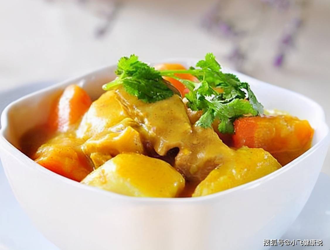 使用材料:牛腩500g,胡蘿卜1根,馬鈴薯1個,姜3片,蔥適量,咖喱粉12克,椰漿3勺,料酒1大勺,醬油1大勺,糖少許。