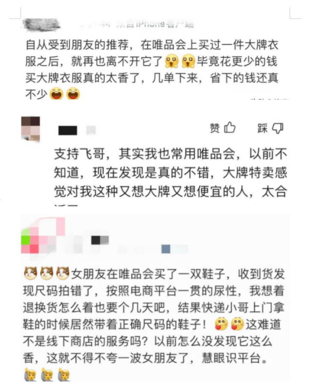 其實這種體驗很多網友也有過,「花更少的錢買大牌衣服太香了」、「唯品會特別適合我這種又愛大牌又想便宜的人」、「在唯品會買鞋,尺碼錯了,心想著換貨怎麼著也要個幾天吧,結果快遞小哥上門拿鞋的時候居然帶著正確尺碼的鞋子……」