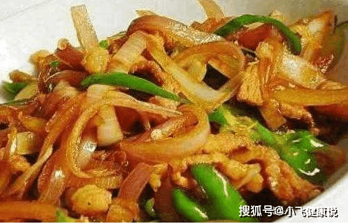 食材:洋蔥、豬瘦肉、尖椒、花椒、料酒、干澱粉、鹽、植物油