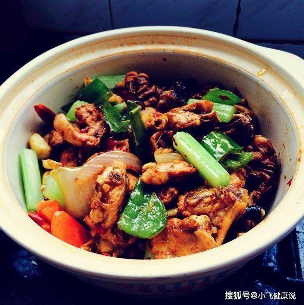 1.雞腿肉斬塊備用;青椒(或尖椒),洋蔥切塊;准備多一些的蔥姜蒜,花椒和干紅辣椒;胡蘿卜切厚片,西芹切斜刀在干鍋或砂鍋中墊底;
