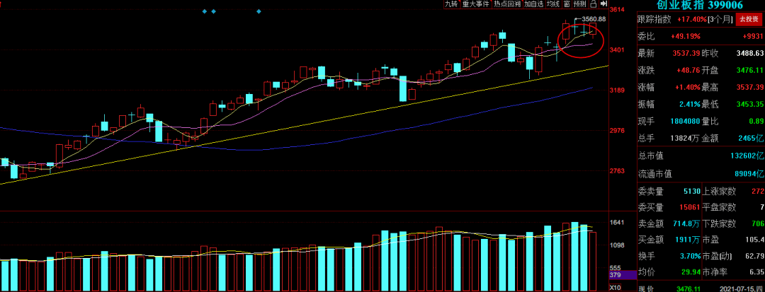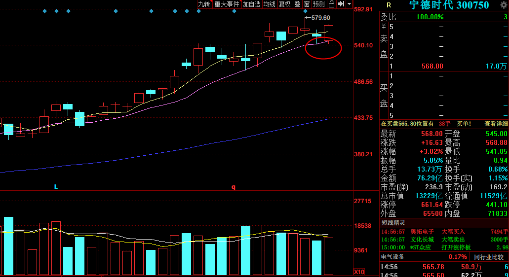 短期而言,創業板走弱的標志依然是寧德時代放量跌穿10日均線。