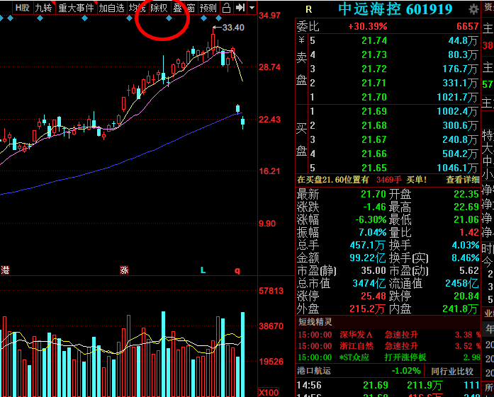 今天海狗跌得挺多,昨天是轉股不是下跌,點一下復權就可以,填權是指能回到30左右的價格。