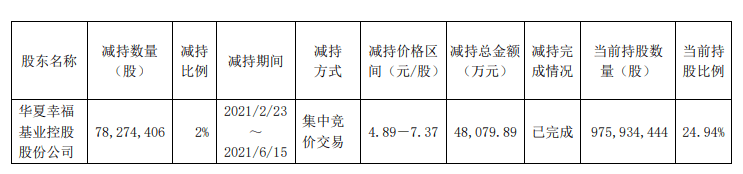 截至目前,控股股東華夏控股持股降至9.76億股,占總股份的24.94%。至於此次被動減持的原因,主要系華夏控股因金融機構執行股票質押式回購業務及融資融券業務協議中強制處置程序而導致的。